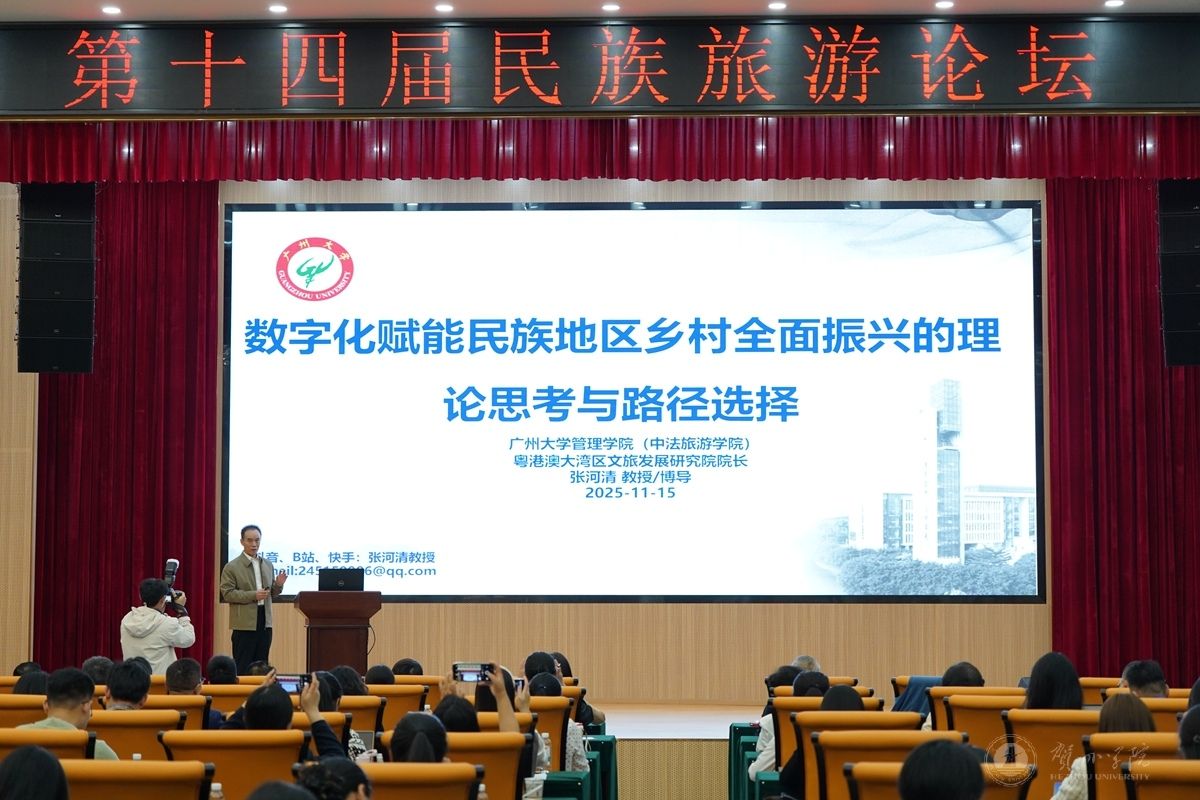 11月15日,中国人类学民族学研究会民族旅游专业委员会2025年会暨第十四届民族旅游论坛在我校召开。论坛以“民族地区乡村全面振兴”为主题,深入剖析民族旅游发展的新趋势、新挑战与新机遇,为在新时代背景下推动民族地区旅游业的高质量发展提供了前瞻性的理论指引和切实可行的路径选择。开幕式上我校党委常委、副校长蒋奕、桂林理工大学吴忠军教授分别致辞。论坛以专家主题报告、分论坛会议、圆桌论坛等形式展开深入交流和研讨。广州大学张河清教授、...