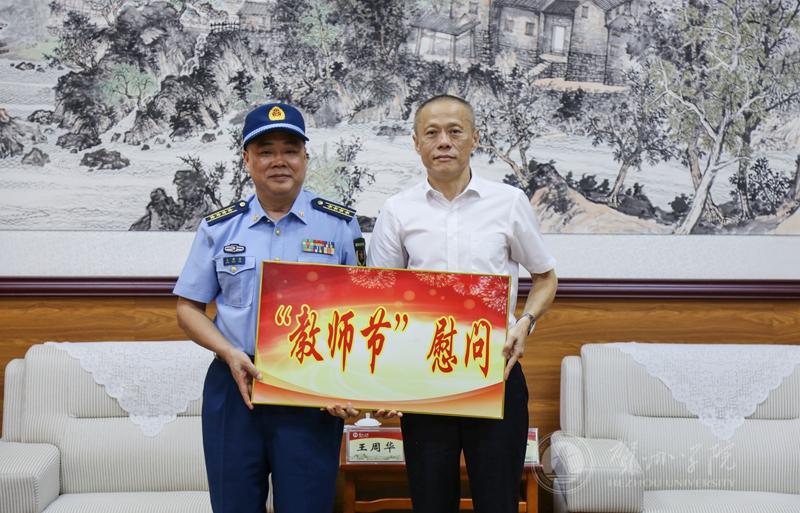 王周华代表贺州军分区对我校全体教师致以节日的问候。双方就征兵工作、国防教育、退役大学生管理与服务等进行了交流。