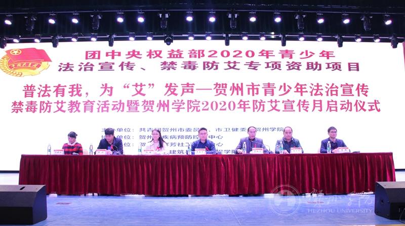 12月1日是第33个“世界艾滋病日”,当天下午,贺州青少年法治宣传、禁毒防艾教育活动暨贺州学院2020年防艾宣传月在我校地方民族文化中心报告厅举行启动仪式。