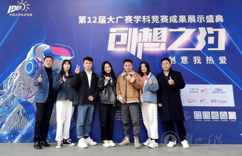 近日,第十二届全国大学生广告艺术大赛学科竞赛成果展示盛典在北京举行。我校设计学院教师梁观光、吴承亮作为优秀指导老师,视觉传达设计学生李士诚、孙小丽、杨海丽、吴小刚、时辰婧作为获奖代表赴京参加活动。