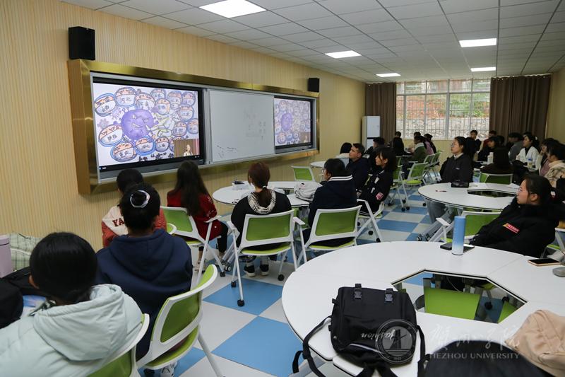 学校党委副书记毛芳才,相关职能部门负责人及500多名师生在主课堂听课。