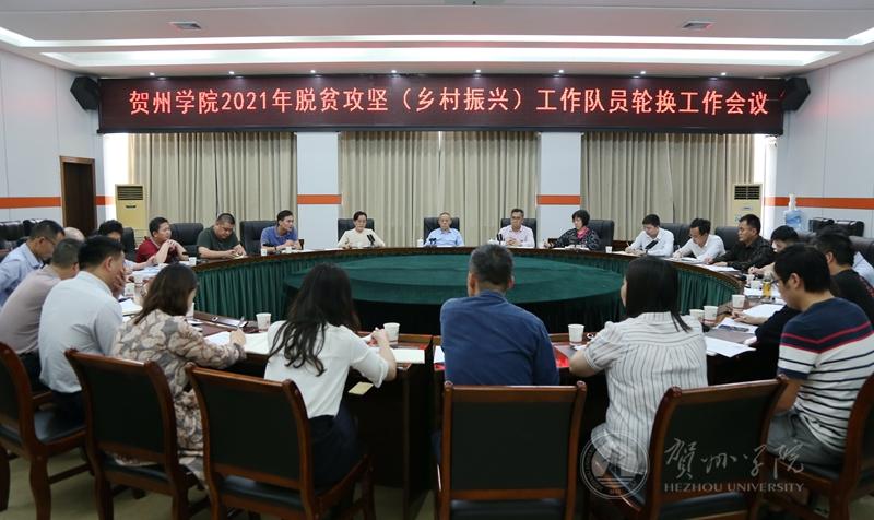 4月2日,学校在行政楼102会议室召开脱贫攻坚(乡村振兴)工作队员轮换工作会议,校领导梁丁丁、毛芳才,组织部门负责人、各牵头单位负责人、新队员选派单位负责人、新老工作队员参加会议。