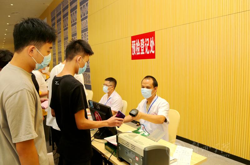 接种首日,师生们在志愿者的引导下,依次排队、扫二维码预约接种凭证、测量体温、并签署知情同意书,分批次进入接种点。