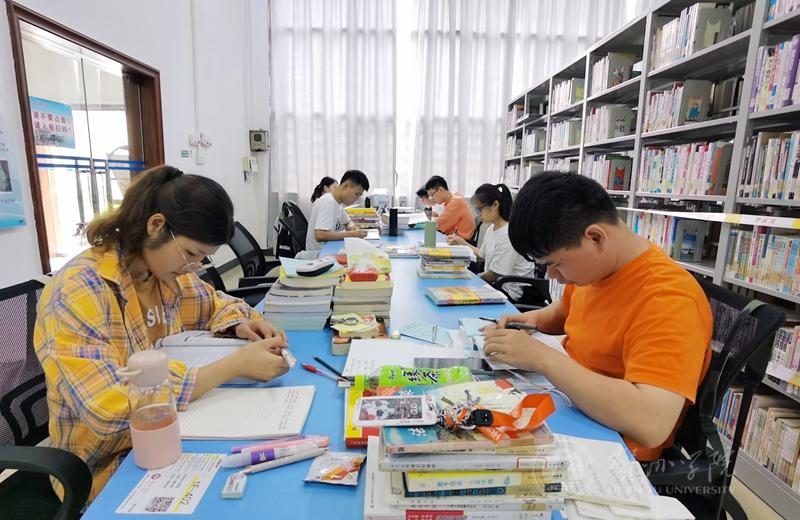 原来,我校今年共有410名学生留校备战研究生入学考试。为了给他们创造良好的学习环境,让他们安心备战,学校将图书馆一楼作为考研复习室,专门作为暑假留校的考研学生复习使用。在这里既可以与小伙伴们一起抱团奋战,也可以第一时间内找到相关学习资料。此外,学校还为他们统一安排食宿,解决大家学习生活上的后顾之忧。