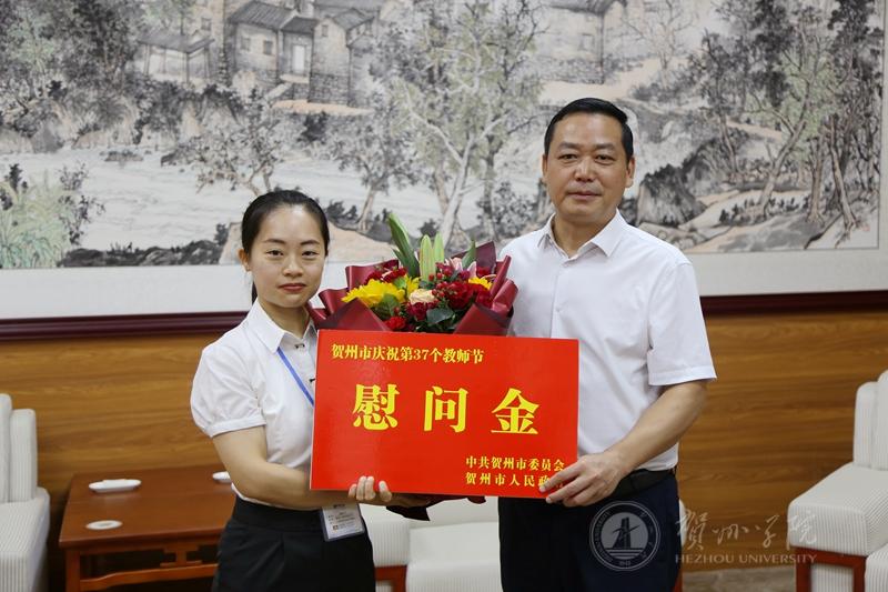 在第37个教师节到来之际,9月8日上午,贺州市委副书记、市人民政府市长彭代元到校开展教师节慰问活动,并代表市委、市政府向全体教职工致以节日问候。