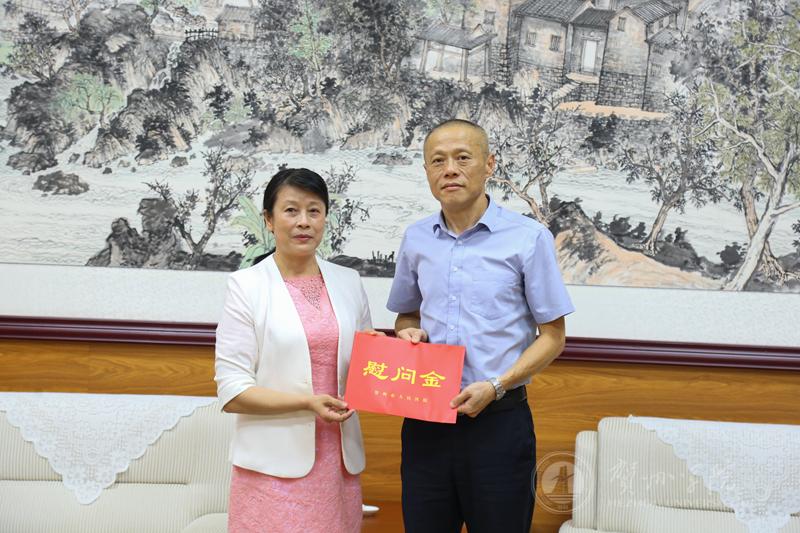 9月9下午,贺州市人民医院党委书记苏飞群一行到校开展教师节慰问,与学校党委书记梁丁丁、副校长朱其现在行政楼103会议室进行座谈交流。