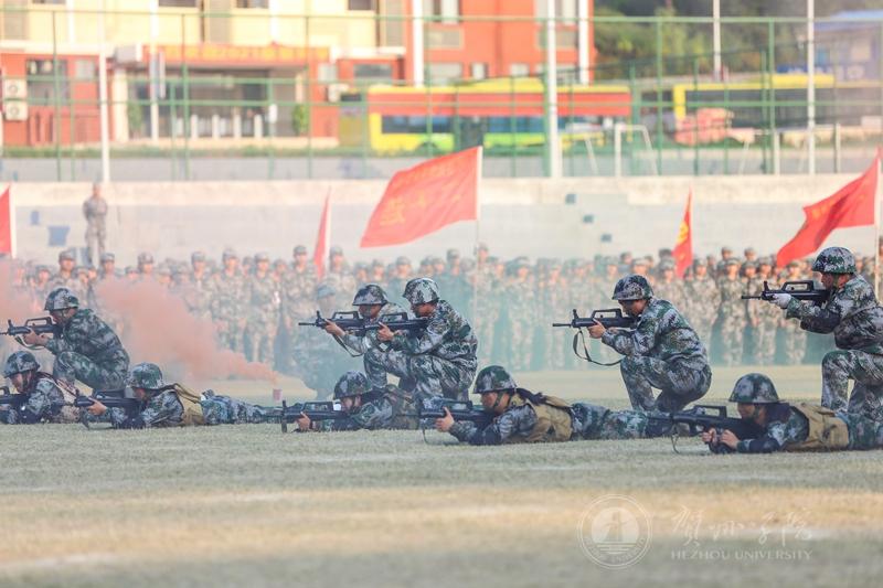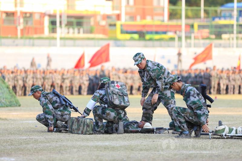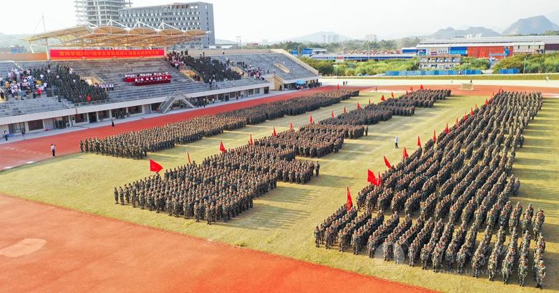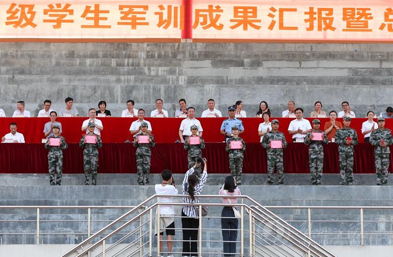 9月29日下午,我校2021级新生军训总结暨表彰大会在北苑田径运动场举行。学校领导吴郭泉、毛芳才、黎琼锋、朱其现、蒋红星,八步区武装部部长王跃出席。