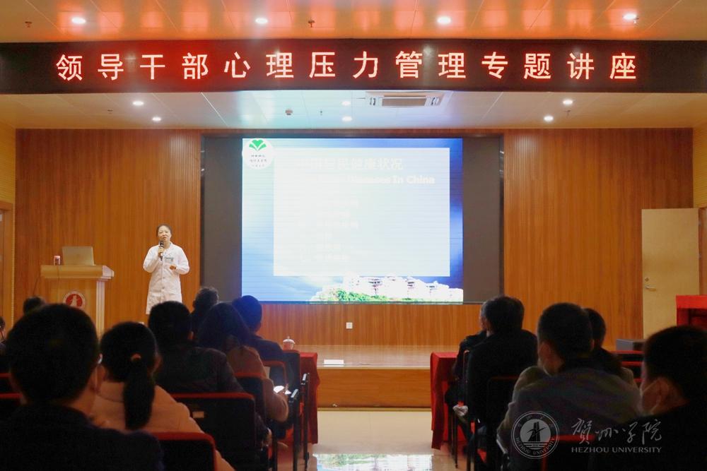 12月13日下午,我校在创新创业园三楼311会议室举办领导干部、高层次人才心理压力管理专题讲座暨健康义诊活动。邀请桂林医学院附属医院综合科(医疗保健病区)主任徐彤彤教授作专题辅导。