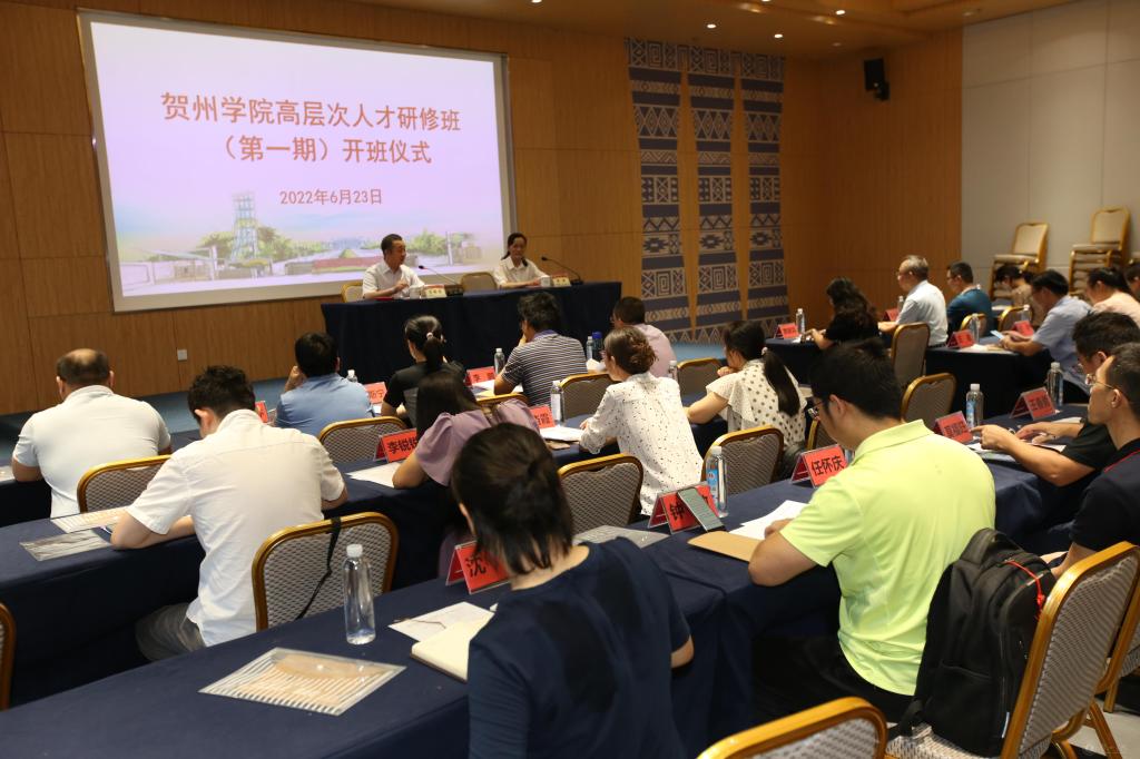6月23日上午,我校在地方民族文化研究中心107会议室举办贺州学院高层次人才研修班(第一期)开班式,学校校长吴郭泉出席并讲话,党委常委、组织部部长蒋奕主持。