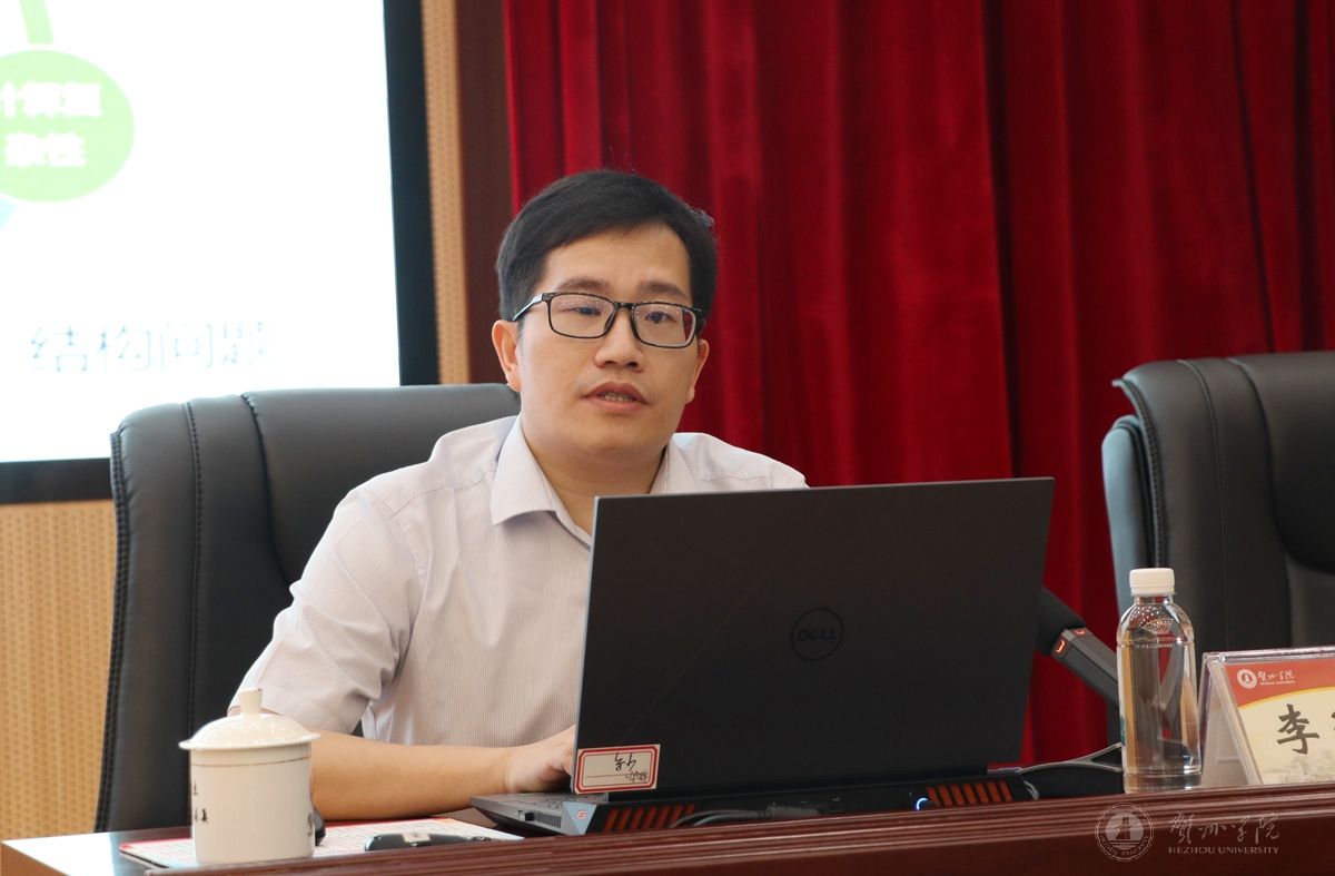 自治区发展改革委社会发展处处长杨志鹏作题为《广西地方高校“十五五”规划编制专题辅导交流——以重大战略和重大产业政策引领高校“十五五”发展》的专题辅导。他讲解了高校规划编制的核心原则、重点任务与方法路径;既点明了当前地方高校在发展中面临的机遇与挑战,也提供了对接政策、争取资源、优化基建的具体思路。并针对我校编制“十五五”专项规划提出“思政优先、规划衔接、产教适配、政策借力、育质提升”等建议。