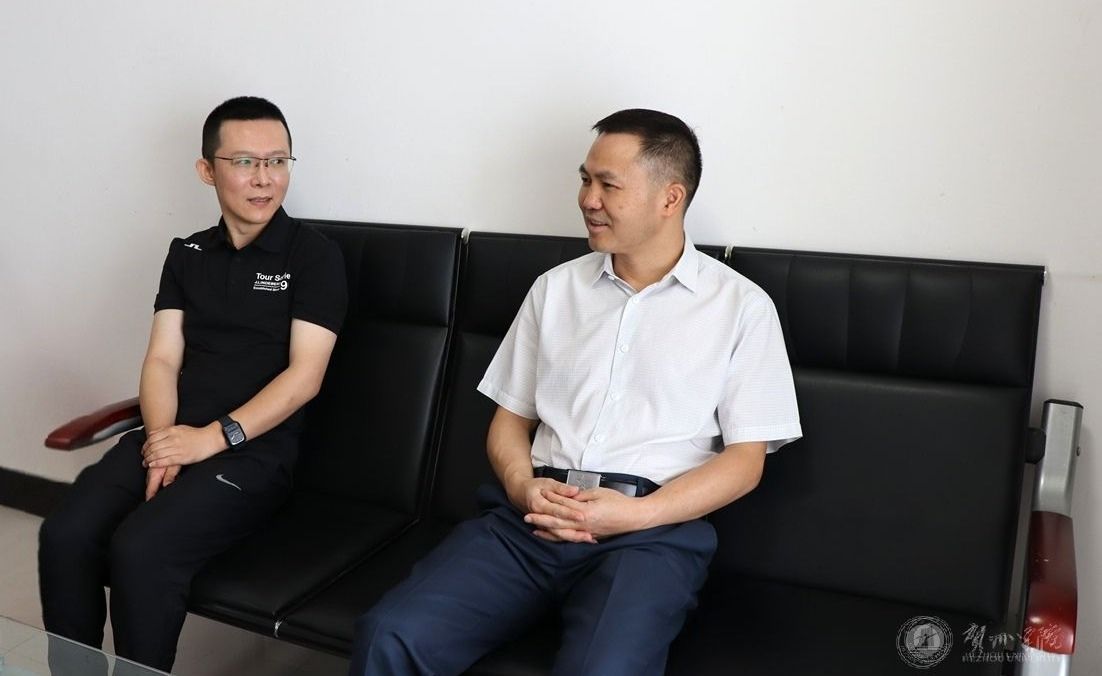 图为党委书记李勇齐(右)慰问高层次人才代表