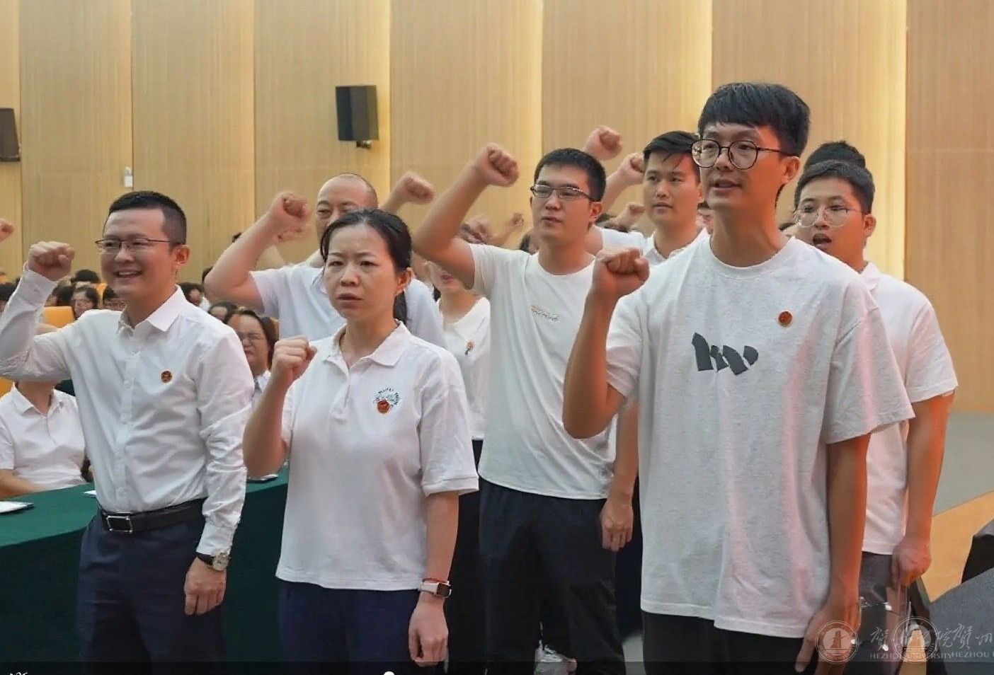 表彰会上,自治区模范教师张锋教授带领新入职教师进行入职宣誓,他们表示将坚守为党育人、为国育才的初心使命,在推进中国式现代化教育强国建设中努力奋斗。