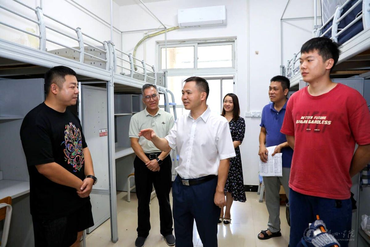 迎新期间,学校党委书记李勇齐到迎新现场,走访了东、西校区迎新接待点、学生食堂及新生宿舍,实地检查迎新工作开展情况,并与新生及家长亲切交流。在迎新大本营,他详细了解了各学院新生报到情况,并指出,迎新工作是展现学校管理水平和人文关怀的重要窗口,各学院和职能部门要强化服务意识,细化报到流程,确保“一站式”服务高效便捷,为新生入学保驾护航。在硕士研究生宿舍,他与新生进行了亲切交流,细致询问他们的适应情况、生活需求及学业规划,他鼓励硕士研究生不仅要专注学术研究,还要发挥“传帮带”作用,当好本科新生的大哥哥、大姐姐,在科研创新、学风建设等方面树立榜样。