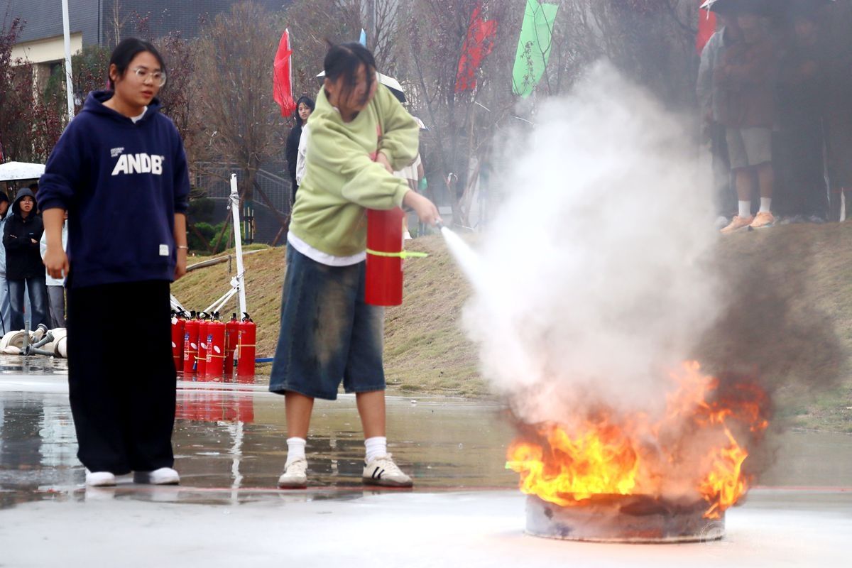 在田径运动会赛场上,我校本科生、研究生、留学生齐上阵,鸣响声、加油声、广播声在运动场上此起彼伏。从田赛的力量与技巧,到径赛的速度与耐力,每一名参赛者都全力以赴,奋勇争先。此外,为增强学生的消防意识和掌握消防技能,本届运动会新增了消防特色竞赛,设置了消防栓出水灭火操、灭火器灭火油操等项目。