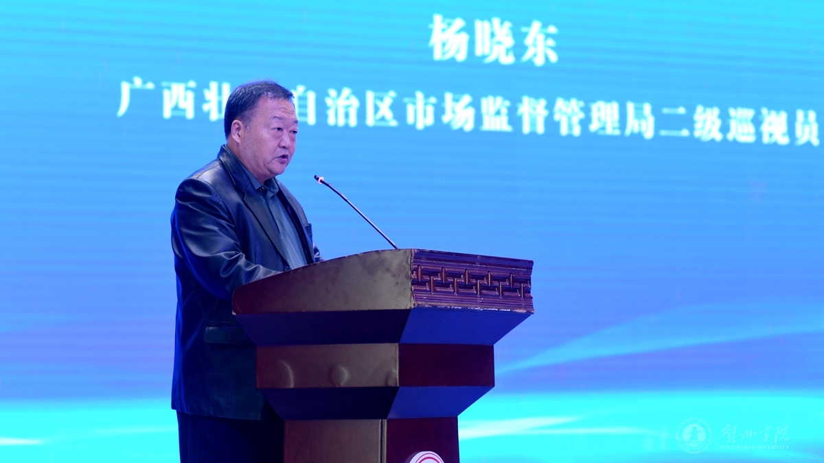 图为广西壮族自治区市场监督管理局二级巡视员杨晓东致辞