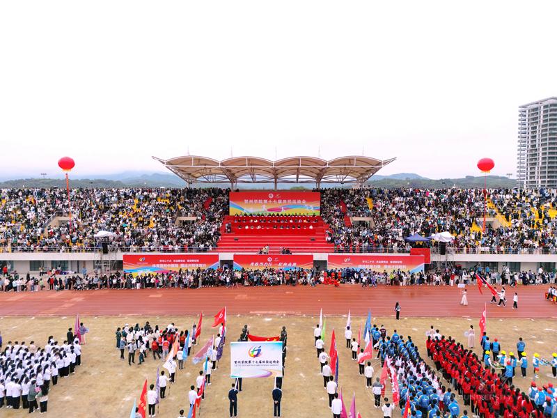 11月16日上午,以“青春当力行,一起向未来”为主题的贺州学院第十七届田径运动会在西校区北苑运动场开幕。学校党委书记王源平宣布运动会开幕、校长吴郭泉致开幕词、党委副书记毛芳才主持开幕式,学校领导何星存、黎琼锋、吕海波、朱其现、蒋峰华、蒋红星出席,学校体育运动委员会委员及全校师生参加。