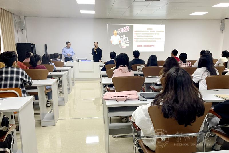 朱其现围绕学习贯彻党的二十大精神,特别是对党的二十大报告中关于中华优秀传统文化、民族团结的重要论述进行了详细解读,并介绍了贺州民族文化资源特色和学校立足贺州开展文化保护传承创新、推进民族团结教育的实践与探索。他希望青年大学生要坚定文化自信,扎根贺州、了解贺州,讲好贺州故事,做贺州文化资源保护和民族团结进步的传承者、践行者、推动者,脚踏实地,发挥优势,奋进新征程,书写新答卷。