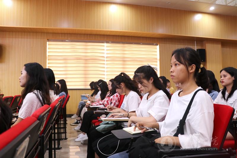 9月18日下午,文化与传媒学院在创新创业园311会议室举办“班主任和班级管理”主题讲座,邀请了八步区第三初级中高级教师黎红玲主讲。学院副院长陶俊伟、汉语言文学研究室主任白燕萍,学院2018级和2017级汉语言文学专业的120多名学生参加。