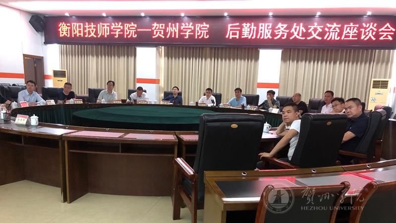 5月21日上午,衡阳技师学院后勤处处长罗颖一行到校考察交流,与我校后勤服务处处长黄鼎玉、副处长黄胜柱及相关科室负责人在行政楼102会议室召开交流座谈会。