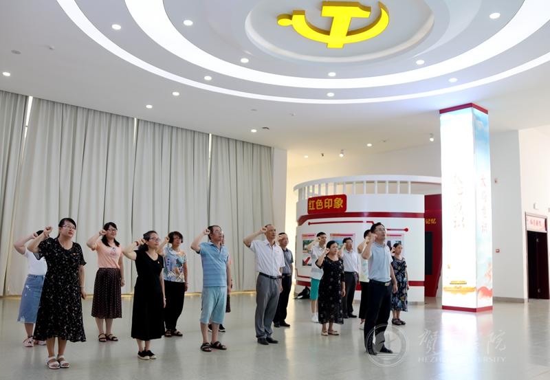 在党支部书记张百顺的领誓下,全体党员重温入党誓词。