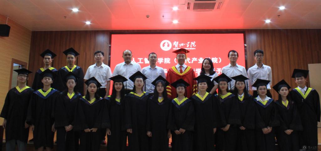 6月23日下午,人工智能学院(现代产业学院)2021届毕业典礼暨学位授予仪式在创新创业园311会议室举行。学校校长吴郭泉应邀出席,并为毕业生们拨穗正冠和颁发学士学位证书。