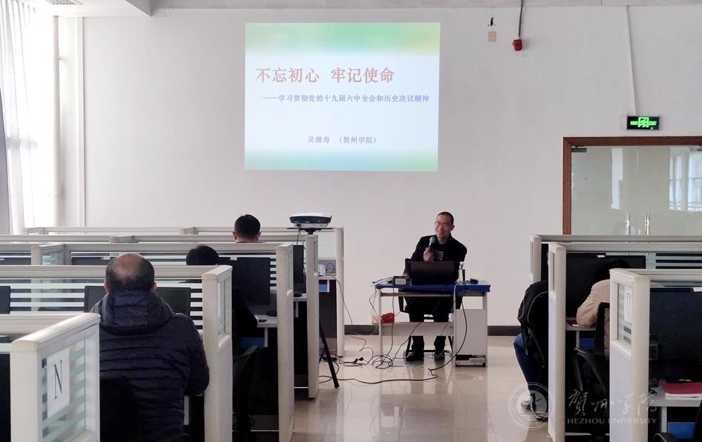 12月8日下午,图书馆党支部在西馆电子阅览室举办学习宣传贯彻党的十九届六中全会精神专题宣讲报告会(图书馆专场),由学校宣讲团成员、马克思主义学院吴继寿副教授作专题宣讲。