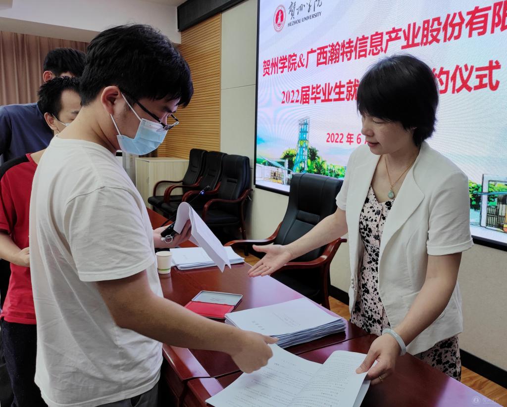 6月8日上午,人工智能学院与广西瀚特信息产业股份有限公司在逸夫楼329会议室举行2022届毕业生就业集体签约仪式,现场有34名毕业生成功签约。