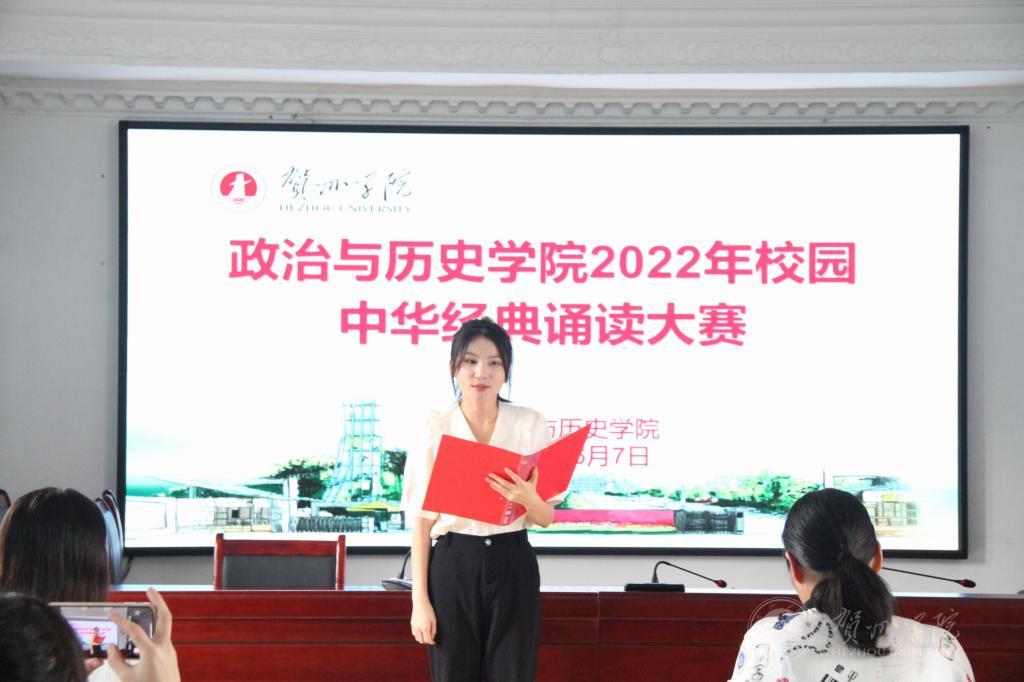 6月7日下午,政治与历史学院在该院508学术报告厅举办2022年校园中华经典诵读大赛,学院党总支书记廖玉梅出席。