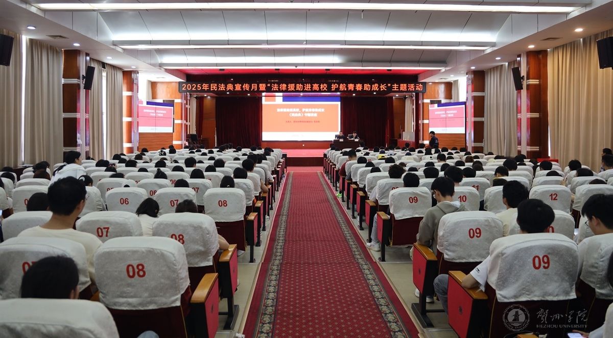 5月27日,我校与贺州市司法局联合开展2025年民法典宣传月暨“法律援助进高校 护航青春助成长”主题活动,进一步增强师生的法律意识,提升他们对《中华人民共和国民法典》(以下简称《民法典》)的认知与运用能力,营造浓厚的校园法治氛围。