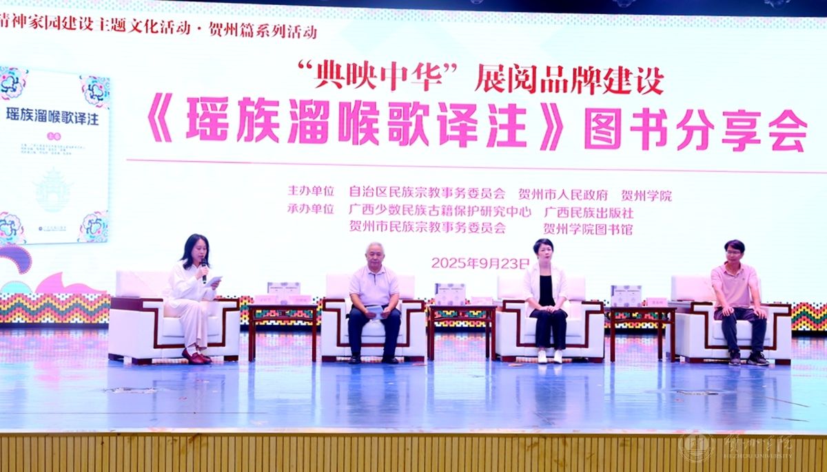 9月23日,以“构筑精神家园 共谱发展新篇”为主题的中华民族共有精神家园建设主题文化活动·贺州篇启动仪式暨“守护非遗·匠心传承”——“铸牢中华民族共同体意识”开学第一课研学实践活动在我校贺州民族文化中心举办。我校“典映中华”展阅品牌建设点揭牌仪式暨《瑶族溜喉歌译注》图书分享会作为该主题系列活动之一,也进行同步开展。
