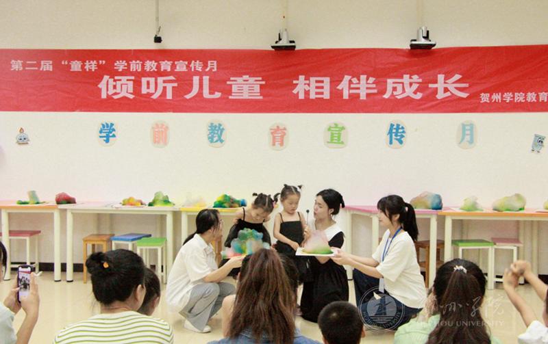 6月4日上午,教育与音乐学院第二届“童样”学前教育宣传月科活动在西校区逸夫楼422教室举办,来自贺州市的11组家庭参加活动。