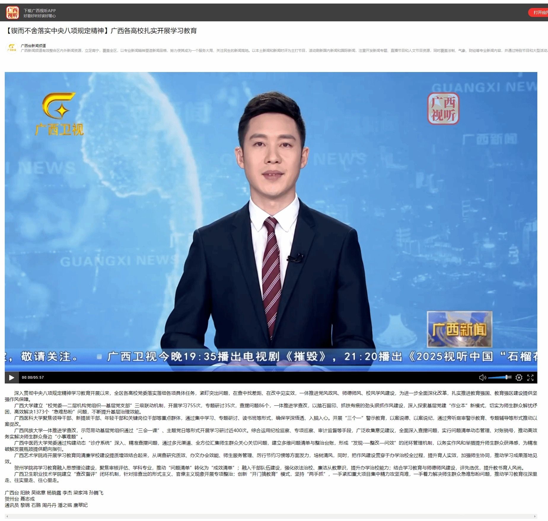 深入贯彻中央八项规定精神学习教育开展以来,全区各高校党委落实落细各项具体任务,紧盯突出问题,在查中找差距、在改中见实效,一体推进党风政风、师德师风、校风学风建设,为进一步全面深化改革,扎实推进教育强国、教育强区建设提供坚强作风保障。