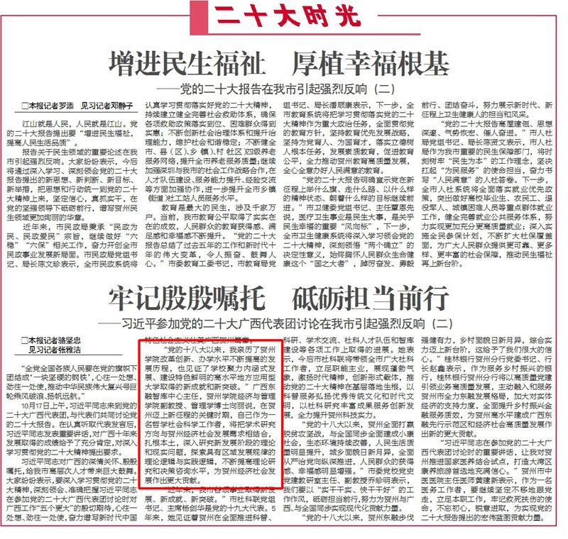 【贺州日报】牢记殷殷嘱托 砥砺担当前行——习近平参加党的二十大广西代表团讨论在我市引起强烈反响