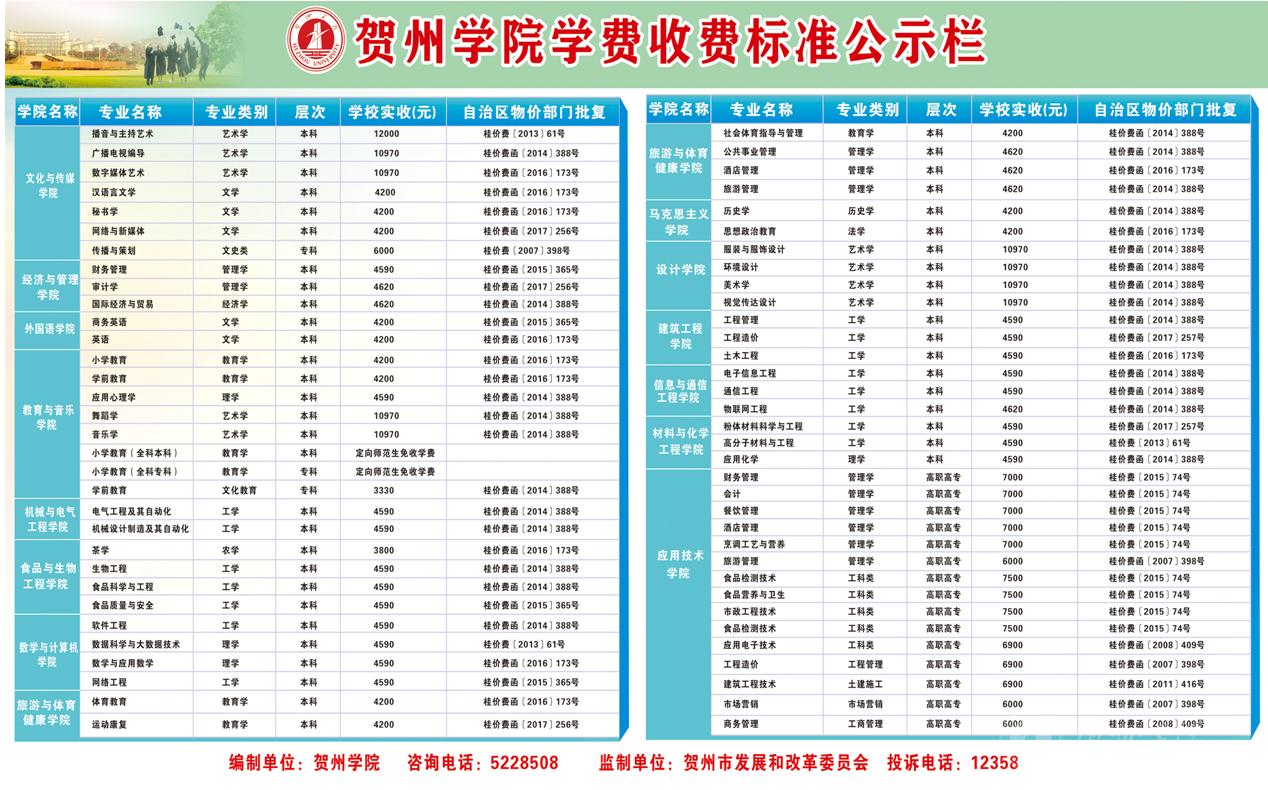 贺州学院2019年学费收费公示