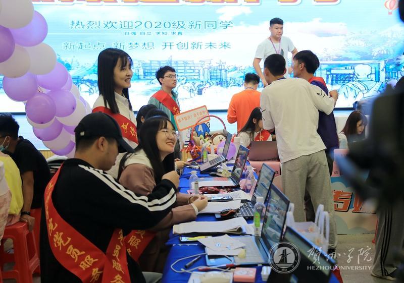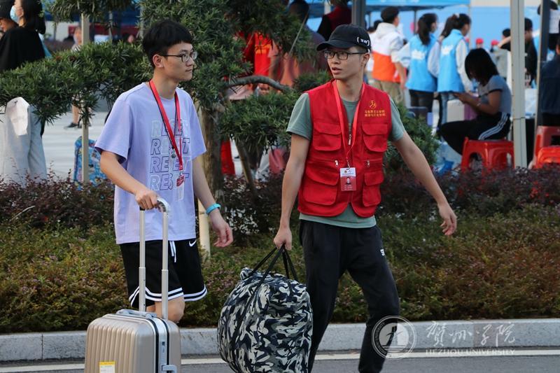 在新生接待处,同样有着一群热情似火的学长学姐们。他们作为迎新工作的志愿者,忙前忙后地给学弟学妹们提行李,带领他们报到注册,入住宿舍,领取军训用品……,受到新生和家长们的一致好评。来自文化与传媒学院的志愿者董星材表示:“当用双手提起新生行李的时候,我意识到自己已经成为了一名学长,为来校报到的学弟学妹们服务也是一份责任,也应该为他们树立好榜样。”