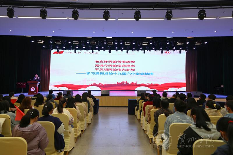 12月8日,学校党委书记梁丁丁在我校地方民族文化研究中心报告厅为师生宣讲党的十九届六中全会精神。党委常委、宣传部部长谢雪清,党委常委、组织部部长蒋奕,马克思主义学院教师,各二级学院学生代表聆听宣讲报告。