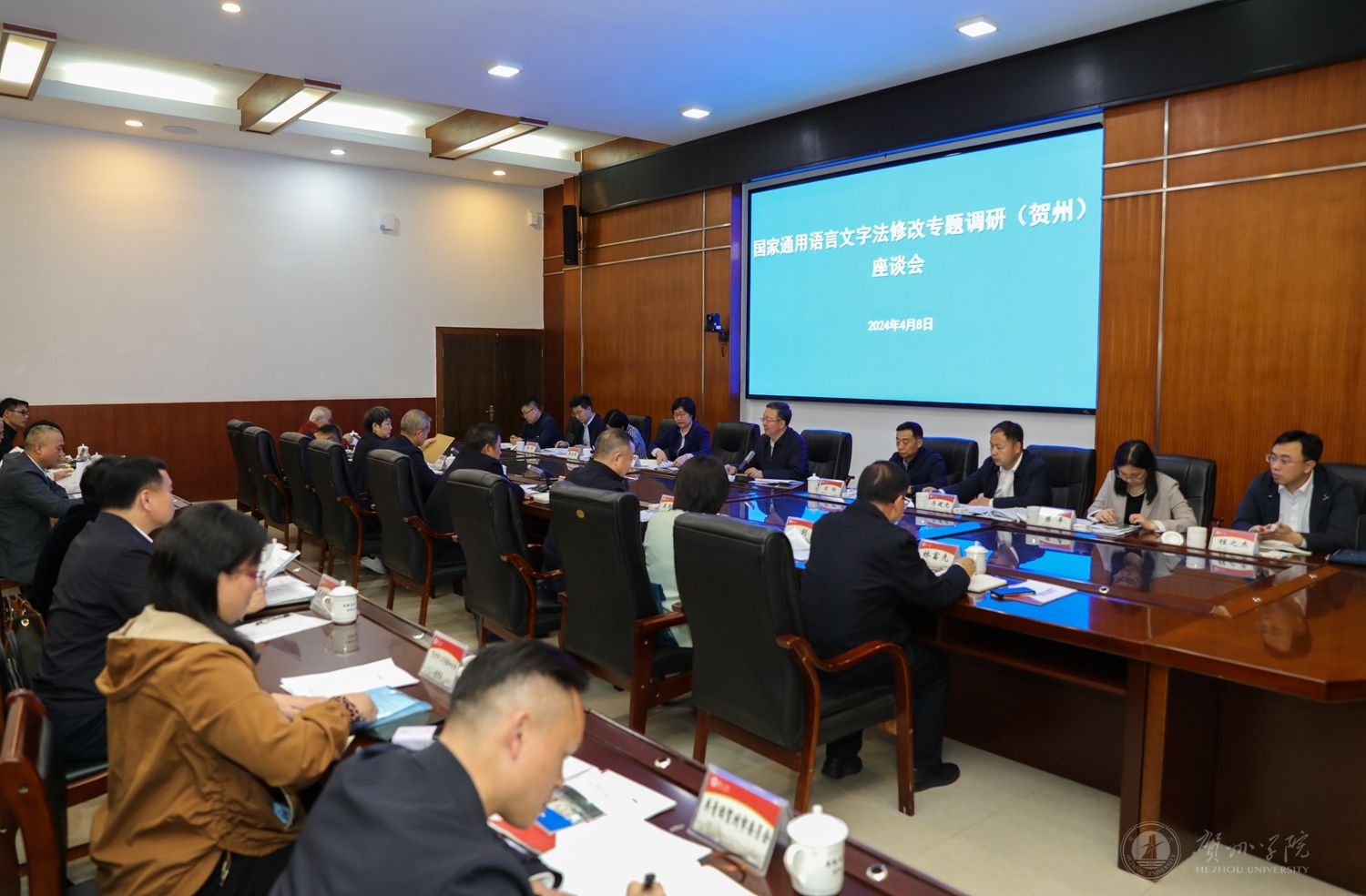 座谈会上,调研组听取了贺州学院、贺州市人民政府,以及贺州市有关局委、县区语委等单位、部门和专家学者在国家通用语言文字工作中的做法及经验、问题及建议等工作汇报。