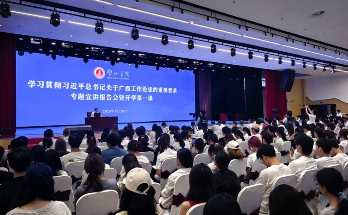 9月28日,我校党委书记李勇齐以《牢记嘱托 努力成为富有创新精神的时代新人》为题进行深入学习贯彻习近平总书记关于广西工作重要论述专题宣讲暨“开学第一课”,号召广大师生以创新为魂,勇担时代使命,在服务广西发展中谱写青春华章。课程通过线上线下结合方式进行,主会场设在地方民族文化研究中心报告厅,各教学楼教室、二级学院会议室同步设立分会场。全体在校学生、青年教师共两万余人聆听了授课。