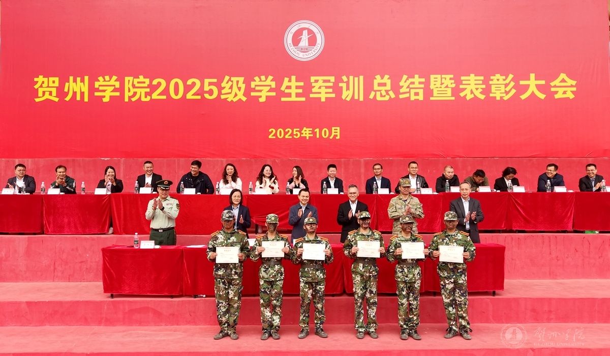 10月23日上午8点30分,我校西校区北苑田径运动场上团旗招展、口号嘹亮、列队整齐,2025级学生军训成果汇报暨总结表彰大会在此举行。学校党委书记李勇齐、副书记毛芳才、副校长蒋奕,承训部队领导海军驻贺某部队许凌上校、武警广西总队贺州支队副支队长吴伟名中校出席。
