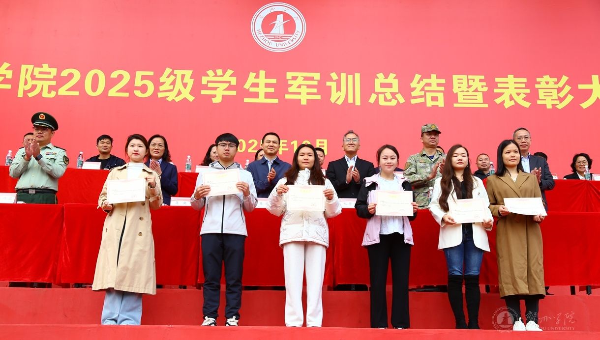 大会对军训期间表现突出的集体与个人进行了表彰。校领导先后为获评“优秀连队”“优秀教官”“优秀指导员”及“训练标兵”等代表颁发了证书,勉励同学们将军训中锤炼出的坚韧品格和优良作风延续到今后的学习生活中。