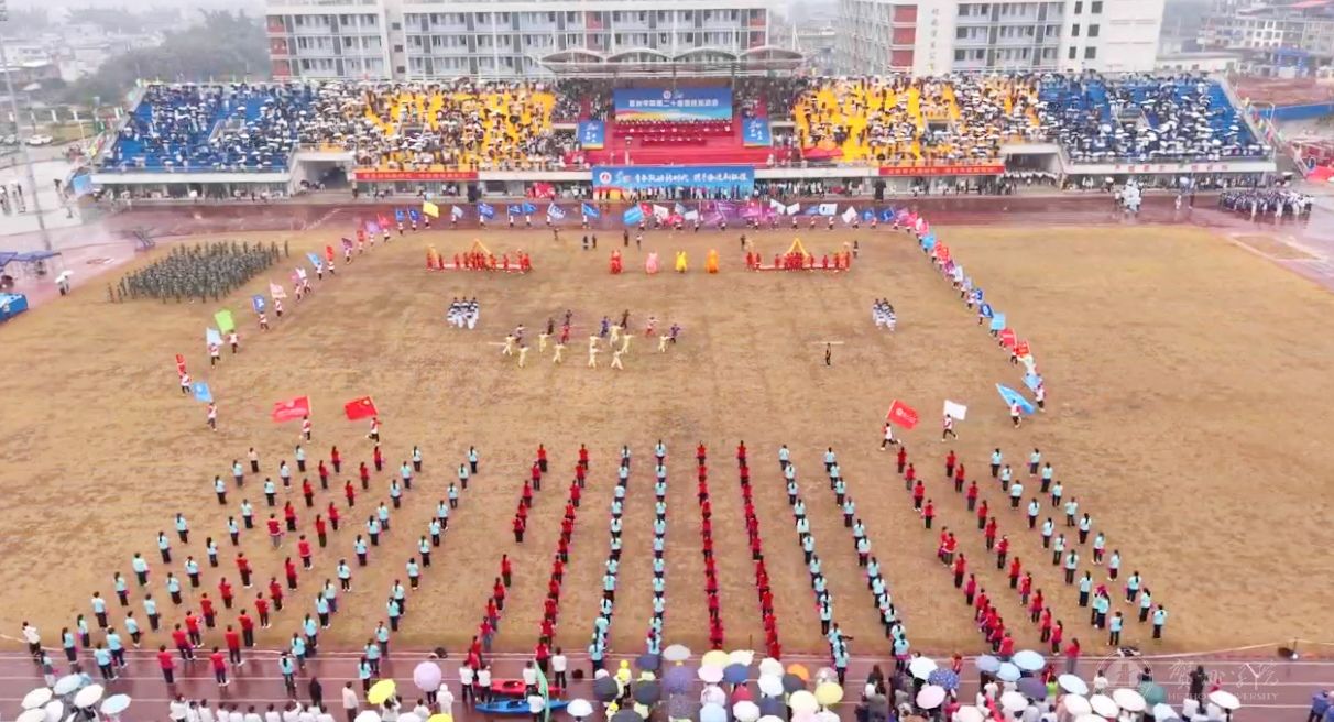 紧接着的国旗护卫队、仪仗队、裁判员方队、教职工代表队以及各学院运动员方阵依次入场,他们精神抖擞,步伐铿锵,充分展示了学校的蓬勃朝气。尤其是各二级学院方阵,各具特色的创意表演精彩亮相,有的尽显专业风采,有的融入文化底蕴,有的洋溢青春活力用独特方式展现学院魅力,为开幕式注入别样精彩。