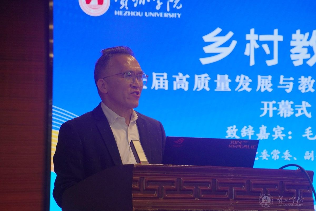 张达河在致辞中指出,乡村教育承载着传播知识、塑造文明乡风的功能,肩负着为乡村振兴培育人才、激活内生动力的时代使命,是让农村孩子“有学上”更“上好学”的民生底线,是阻断贫困代际传递、实现共同富裕的关键抓手。他希望大家借鉴各地各校的宝贵经验,进一步深化乡村教育改革,在师资建设、课程创新、数字化赋能等方面持续发力,让贺州的乡村教育更有温度、更有质量、更有特色。