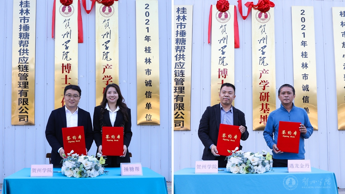 图为我校与捶糖帮公司、遇龙金丹公司签约现场