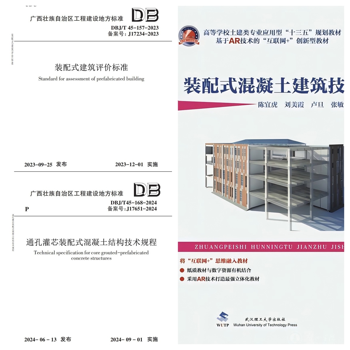 学院充分发挥贺州市“国家级装配式建筑范例城市”的区位与产业优势,将地方资源深度转化为育人资源。学院开发了以装配式建筑为核心的特色课程群,牵头主编《装配式混凝土建筑技术》AR教材,将抽象的技术原理以生动立体的方式呈现给学生,该教材获广西普通本科高校优秀教材二等奖。学院深度参与行业标准制定,牵头或参与制定《装配式建筑评价标准》《通孔灌芯装配式混凝土结构技术规程》等多项广西地方标准,实现教学内容与产业发展前沿深度绑定,让学生在校期间就能接触到行业最新规范与技术。