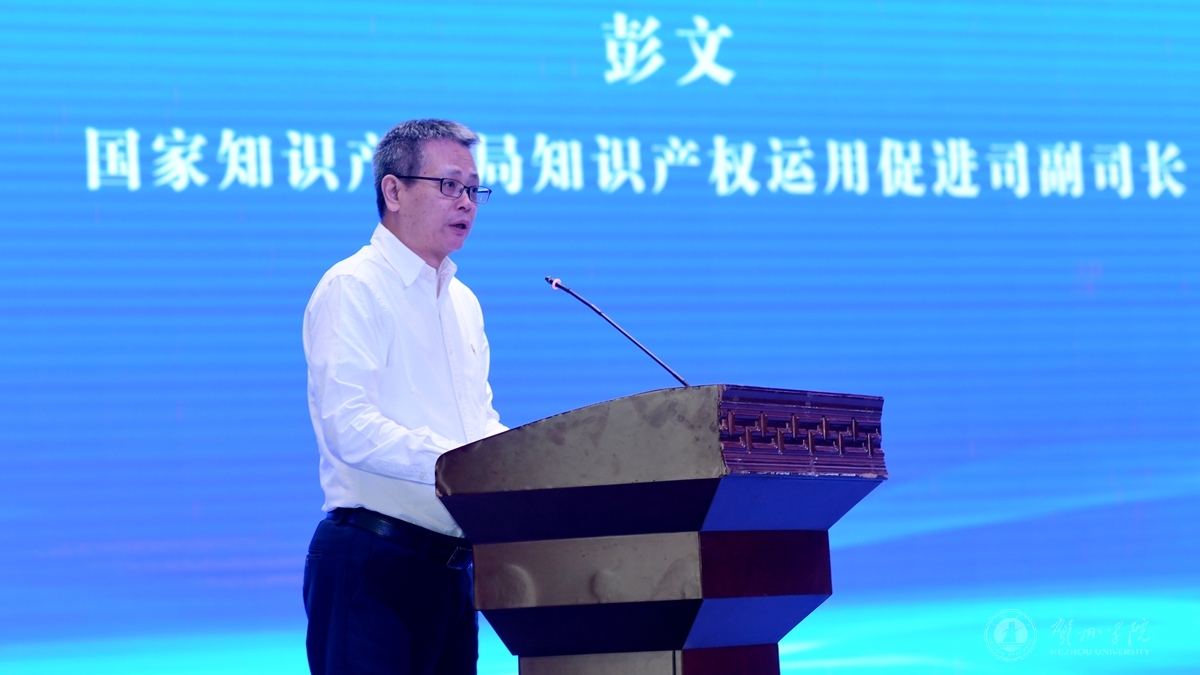 图为国家知识产权局知识产权运用促进司副司长彭文致辞