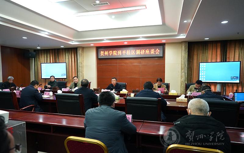 平桂区委常委、办公室主任罗义钦,区委常委、宣传部部长李艳艳,副区长陈志勇,人社局、教科局、城投公司、平顺公司、安顺公司等主要负责人陪同调研或参加座谈;学校党政办、教务处、科研处、学工处、产教融合与创新创业中心、设计学院、外国语学院、经济与管理学院、应用与技术学院有关负责人参加调研座谈。