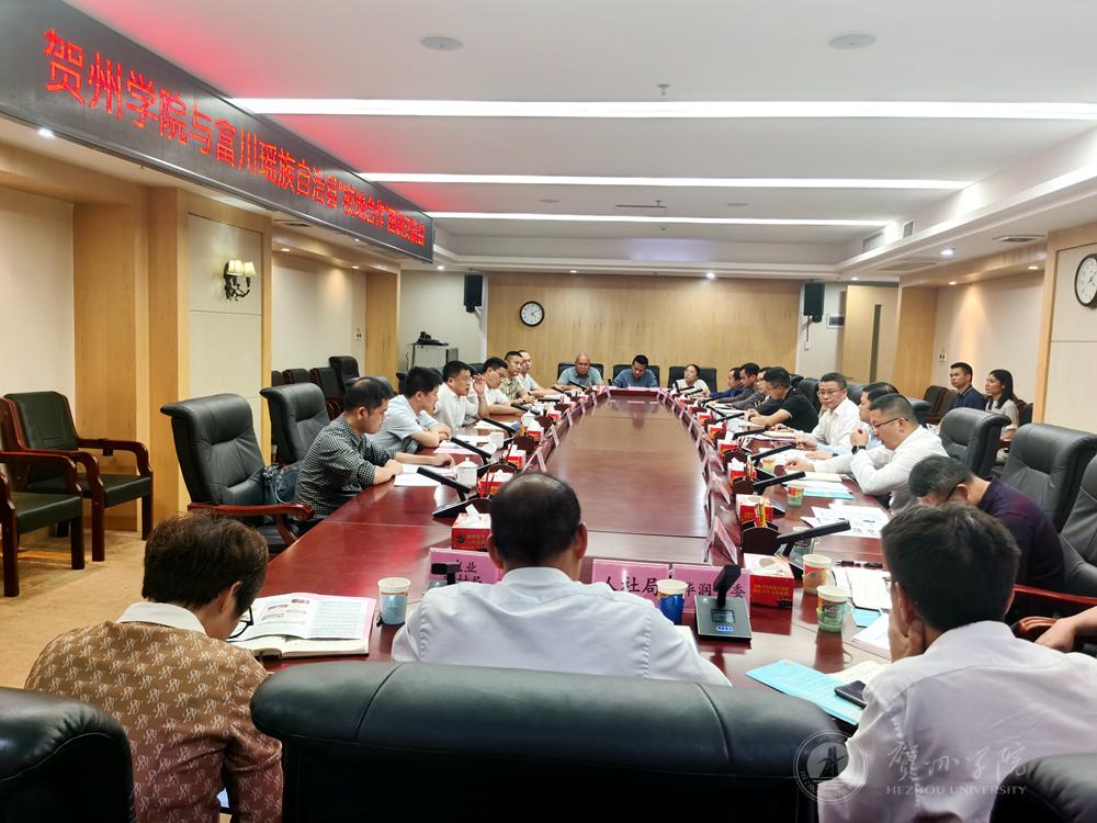 10月19日,学校党委书记王源平、副校长蒋红星一行到富川瑶族自治县调研,与县委书记尹哲、县长胡德珺进行座谈交流。