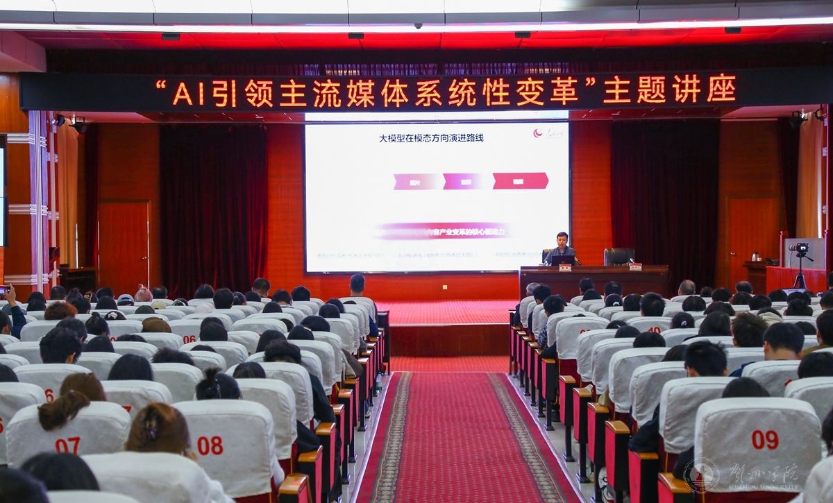 11月5日,我校在西校区行政楼二楼多功能厅举办“AI引领主流媒体系统性变革”主题讲座,邀请了人民网研发部主任、人民日报社AI专班成员、高级工程师袁雷主讲,旨在深入分析人工智能技术如何驱动主流媒体发生系统性、深层次的变革。讲座由党委常委、宣传部部长麦茂生主持。