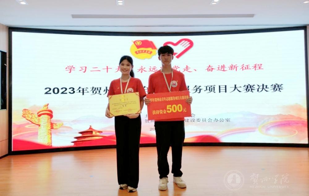 6月8日,由共青团贺州市委员会、贺州市文明办举办了2023年贺州市青年志愿服务项目大赛决赛,我校教育与音乐学院义务支教服务队“爱心支教行,筑梦赤子心”项目在比赛中荣获三等奖。
