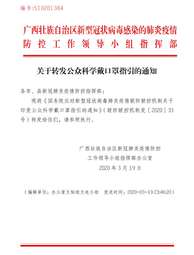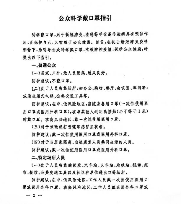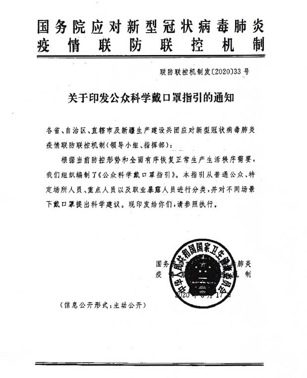 国务院联防联控机制关于印发公众科学戴口罩指引的通知
